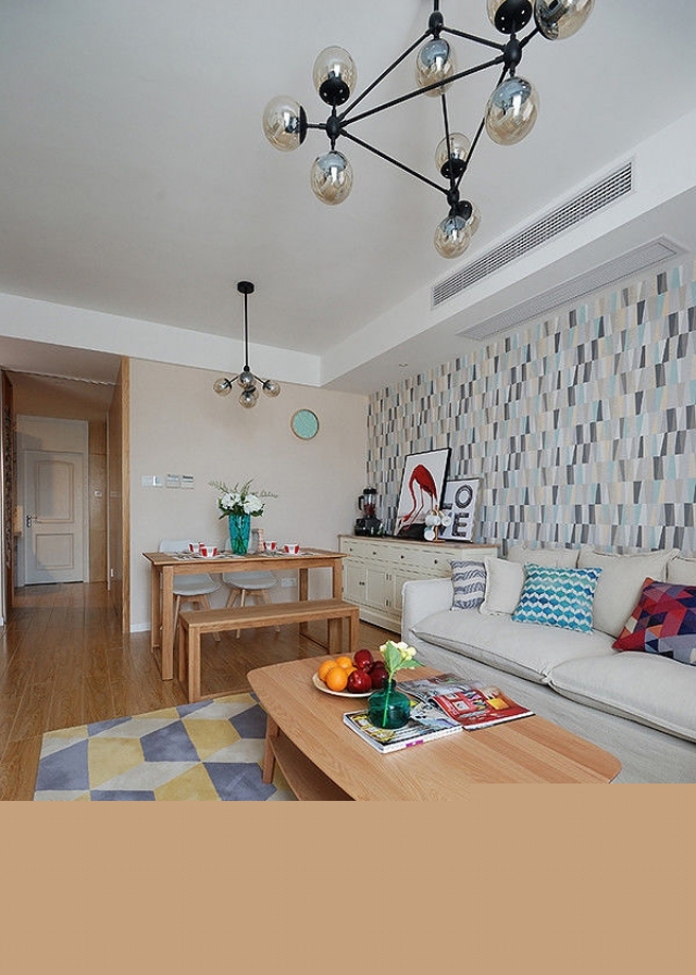 中性色的家具,原木的紋理,抽象的圖形營(yíng)造出恬靜而又輕松,溫馨而又活潑的氛圍。