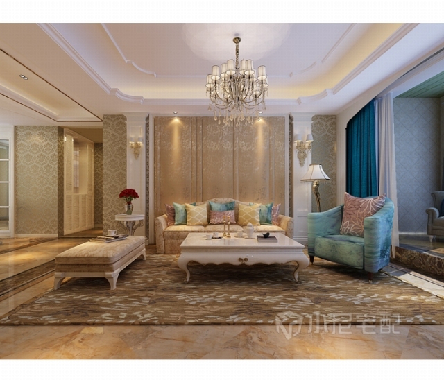 客廳藍色窗簾和水晶燈的搭配讓整體色調(diào)清爽一些。