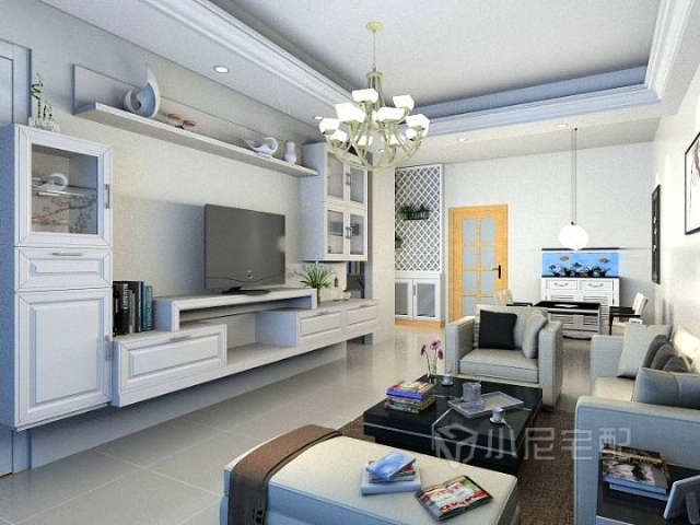 墻面用明亮的米色,局部點綴些金色,如鍍金的壁燈,再加一些藍色作為輔助,便形成豪華格調。