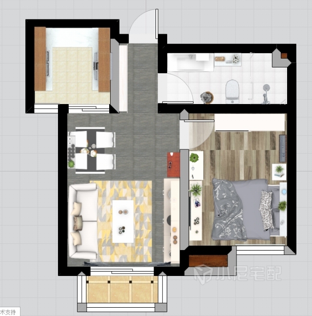 灰色的墻磚,白色的浴室柜與邊柜,美觀又實(shí)用