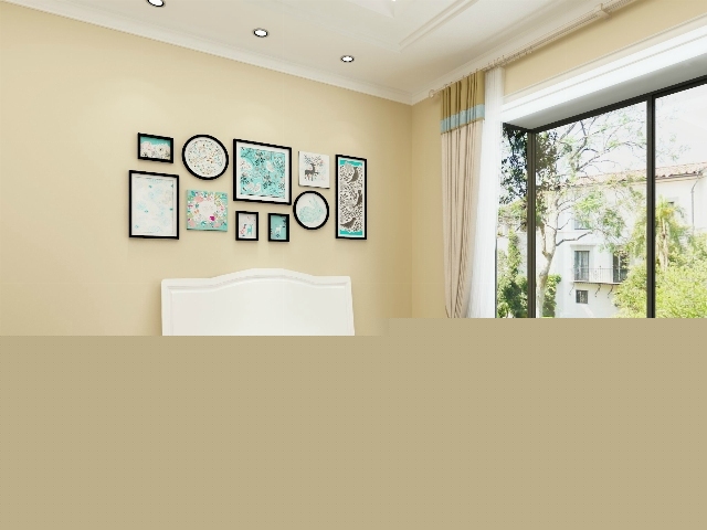 簡約的背景墻,點綴的裝飾畫,沒有復雜的裝飾,簡潔即是豐富。