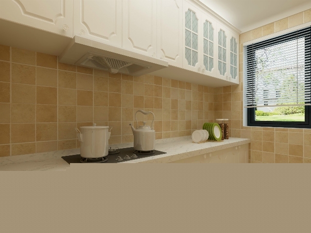 歐式的櫥柜設計,功能齊全,簡潔明亮。