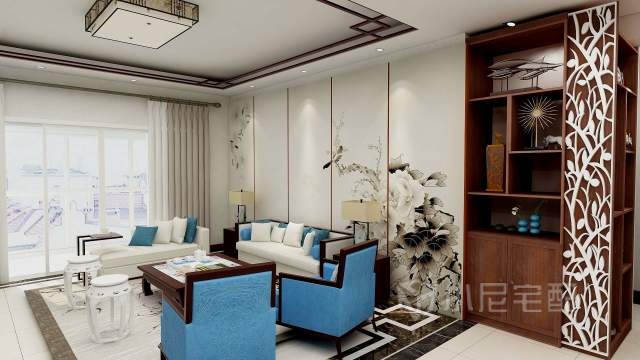 本戶業主是個三口之家,45歲。女兒21歲。一家人比較喜歡沉穩的裝修風格,女主喜歡書法,整個效果是以古典元素為中心,考慮客戶年齡,軟飾上我選用了米色和各種藍色呼應。活躍了深顏色帶來的沉重感。