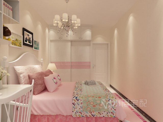甜美的粉色星空圖案床品,搭配素雅簡潔的白色床單,讓臥室充滿女孩最愛的浪漫氣息。藤編床頭柜的點(diǎn)綴,讓這款房間增添了田園的感