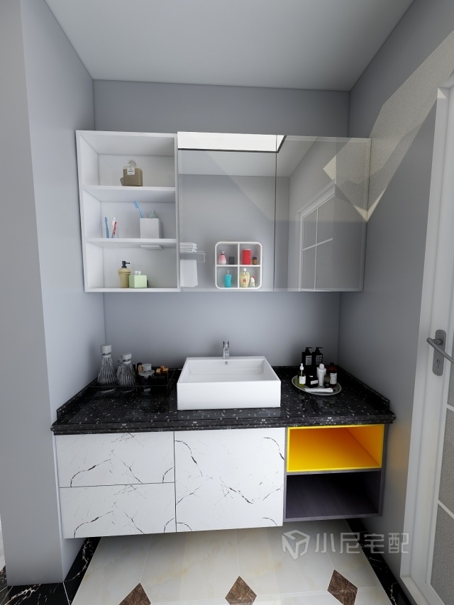 洗手臺儲物的同時(shí)又兼具了日常生活品的擺放,柜門鑲嵌鏡面不僅方便了我們?nèi)粘I睿€有更大的儲物空間,使整個(gè)空間視野更廣闊。