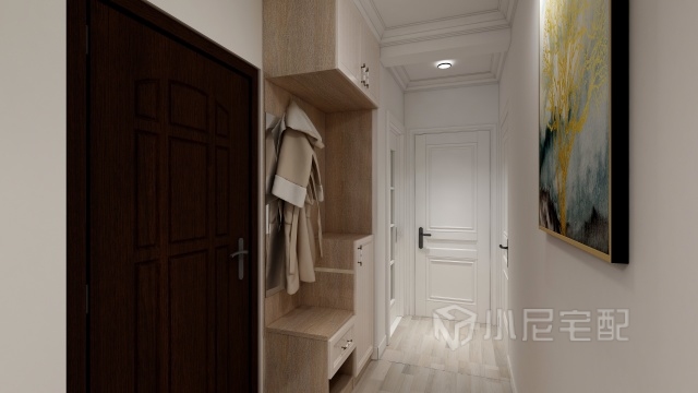 門口放置鞋柜既把門廳處缺角補平,又增大儲物空間